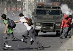 En Chile los carabineros han acumulado experiencia en represiones. No son nuevos en estas artes, por lo que la especial brutalidad esgrimida contra los estudiantes tuvo que ser planeada y ordenada (como sucedió en San Salvador Atenco). Y, también como en el poblado mexiquense, la barbarie institucional ahora lleva el nombre de "algunos excesos", como el disparo de una bomba lacrimógena en el pecho de un joven que se reporta en estado grave (siguiendo con las dramáticas coincidencias).